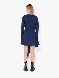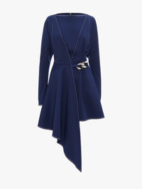- Long sleeve mini dress - Flared silhouette with asymmetric hem - Boat neckline and dropped shoulder - Silver chain link detail - Contrast top stitching - Invisible centre back zip - Fits true to size, take your normal size Details - Colour: Oxford Blue - Composition: 94% Polyester, 6% Elastane - Made in Bulgaria