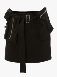 - Mini skirt - Straight fit - Elasticated waistband - Removable cargo pockets - Silver hardware - Fits true to size, take your normal size. Details - Colour: Black - Composition: 100% Cotton - Breathable quality - Flat and clean finish - Fabric from Japan