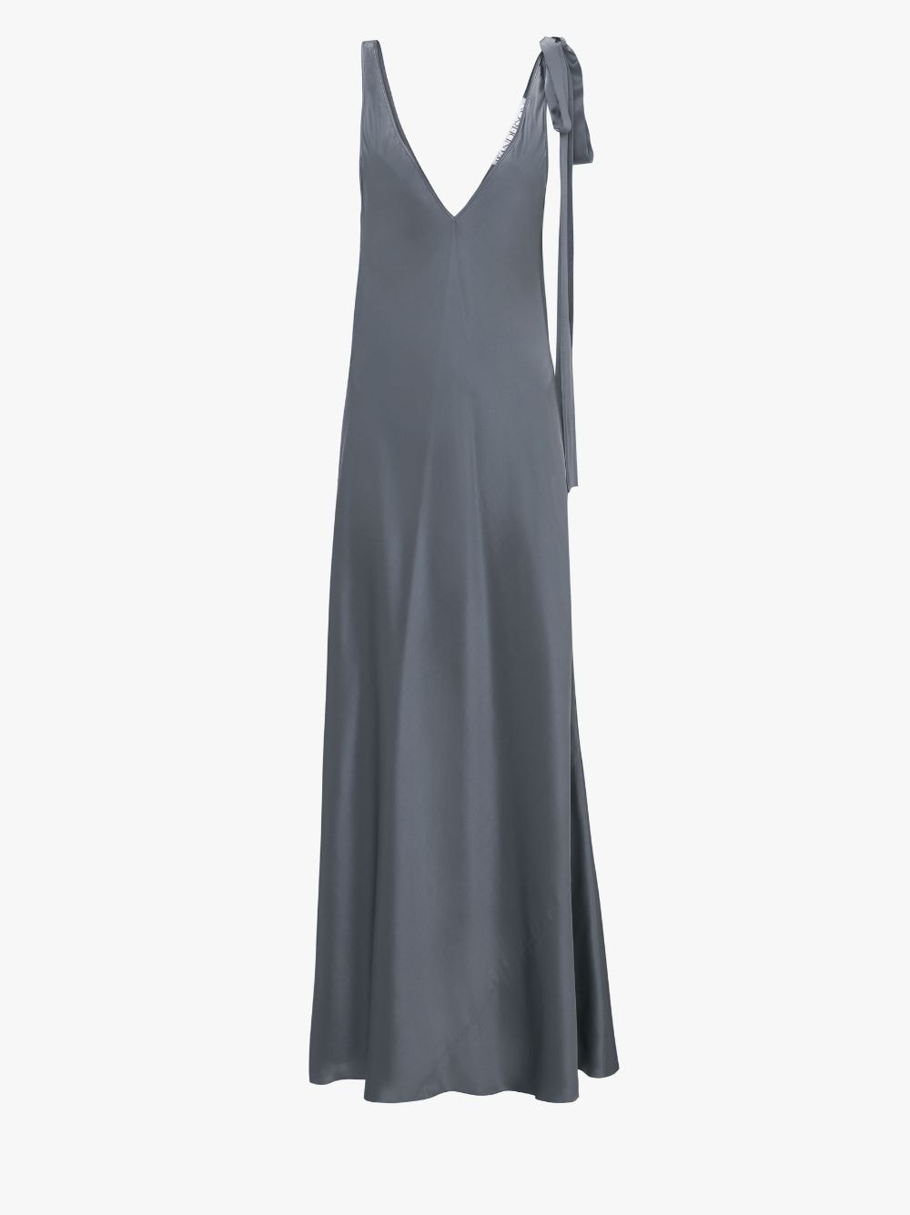 - Relaxed silhouette silk long dress - Shoulder tie detail - Deep V front and back neckline - Fluid hem - Slip on - Fits true to size, take your normal size.