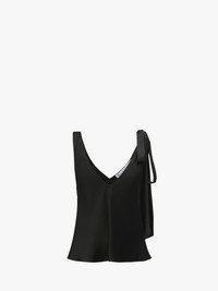 - Fitted silhouette silk top - Shoulder tie detail - Deep V front and back neckline - Fluid hem - Slip on - Fits true to size, take your normal size.