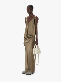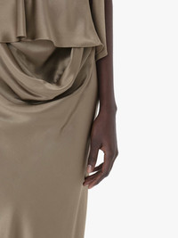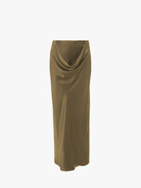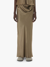 - Fitted silhouette silk long skirt - Draped detail at front waist - Bias cut - Back vent - Invisible side zip - Fits true to size, take your normal size.