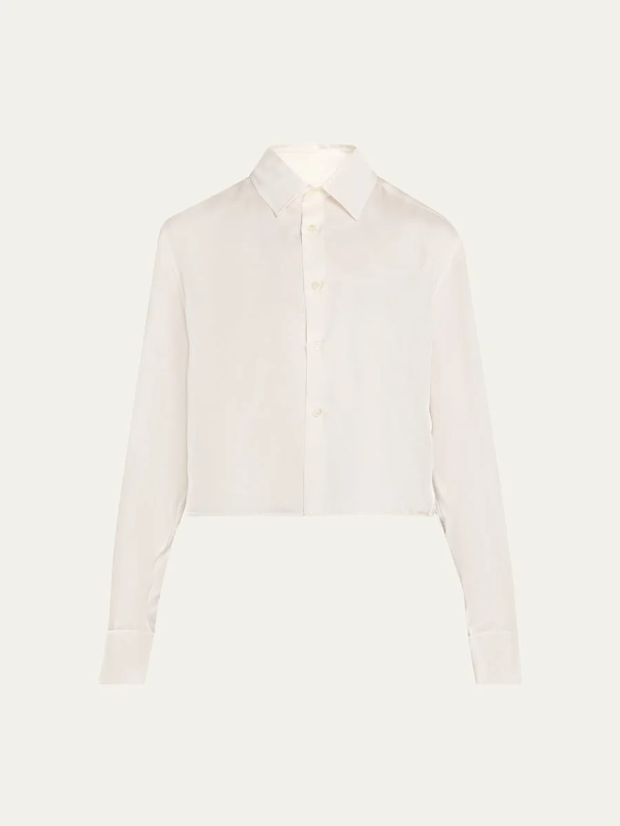 Silk Twill Crop Button-Down Shirt