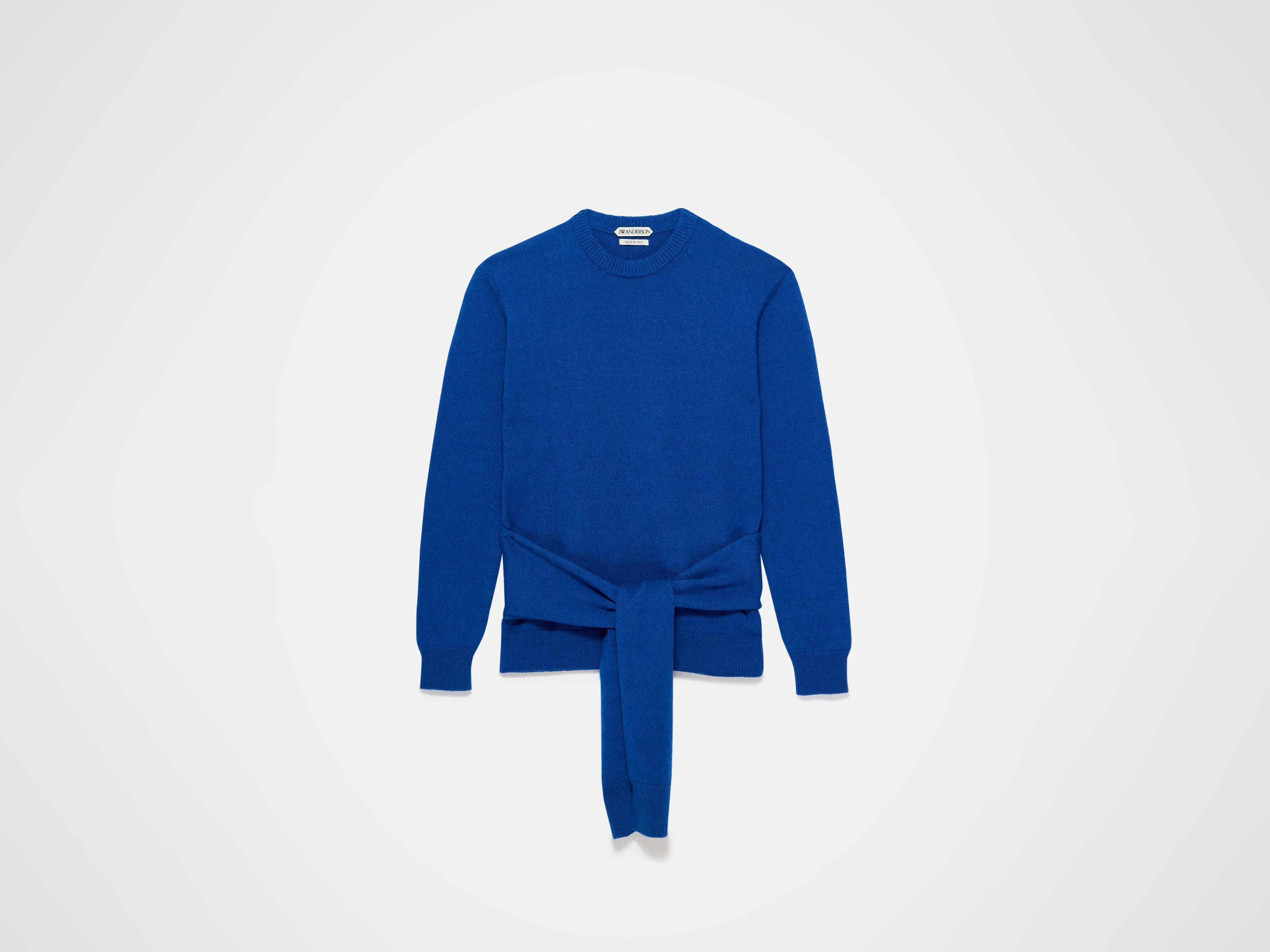 Design inspired by a show piece selected from the JW Anderson archive, refined for everyday wear. Crew neck jumper in cobalt knit, features tie sleeve detail at the waist. Finished with rib trims. Details - Colour: Cobalt - Composition [Main]: 54% Wool, 46% Cotton - Made in: Italy - Model [Wears]: Size S, 180cm Tall - SKU: KW1451YN0455850