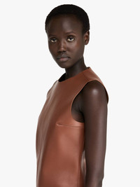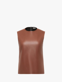 - Sleeveless leather top - Crew neckline - Concealed zip closure at centre back - Unlined - Fitted silhouette, take your usual size Additional Information - Colour: Chestnut - Composition: 100% Leather - Smooth Calf Leather Fabrication - Made in: Italy - SKU: LT0054LT0117621