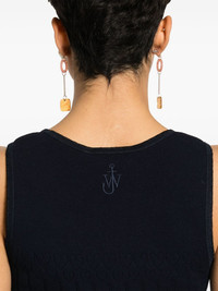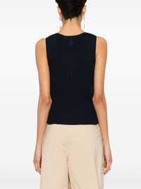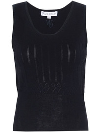sleeveless pointelle-knit top Highlights - Navy blue - Open shoulder - Round neck - Ribbed knit - Perforated pattern - Logo detail Imported Composition Cotton 80%, Nylon 20% SIZE & FIT Model measurements Height 5 ft 9 in(1.76 m) Bust/Chest 31.88 in(81 cm) Hips 35.43 in(90 cm) Waist 24.8 in(63 cm) FittingInformation Designed for a slim fit that sits just away from the body offering a close yet comfortable fit The ribbed hem offers a close, comfortable fit Made with a midweight knit, this piece offers some stretch This piece fits true to size – take your usual size Washing instructions Machine Wash