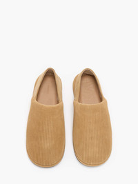- Slip-on Suede loafer mules - Overlock stitch detailing on seams - Plush wool lining - Fits true to size, take your normal size Additional Information - Colour: Beige - Composition - Main: 100% Split Grain Calf Suede - Made in Italy - SKU: FW0165LA0356132
