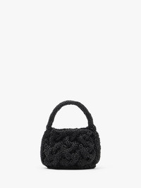 - Hand knitted leather top handle bag - Silver bead with logo engraving on left side handle - Magnet closure - Leather base with blind logo embossing - Unlined - Can be worn in hand Additional Information - Colour: Black - Dimensions: H: 15cm / W: 21cm / D: 10cm - Strap Drop: Long: 10cm - Outer: 100% Full grain lamb leather - Trims: 100% Full grain calf leather - Hardware: 100% Zamak - Made in India