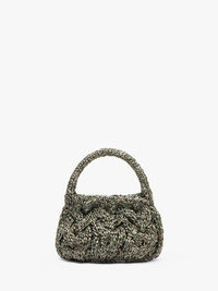 SMALL CABLE KNIT BAG - RAFFIA TOP HANDLE BAG