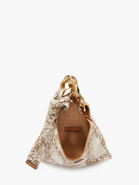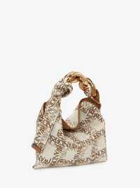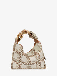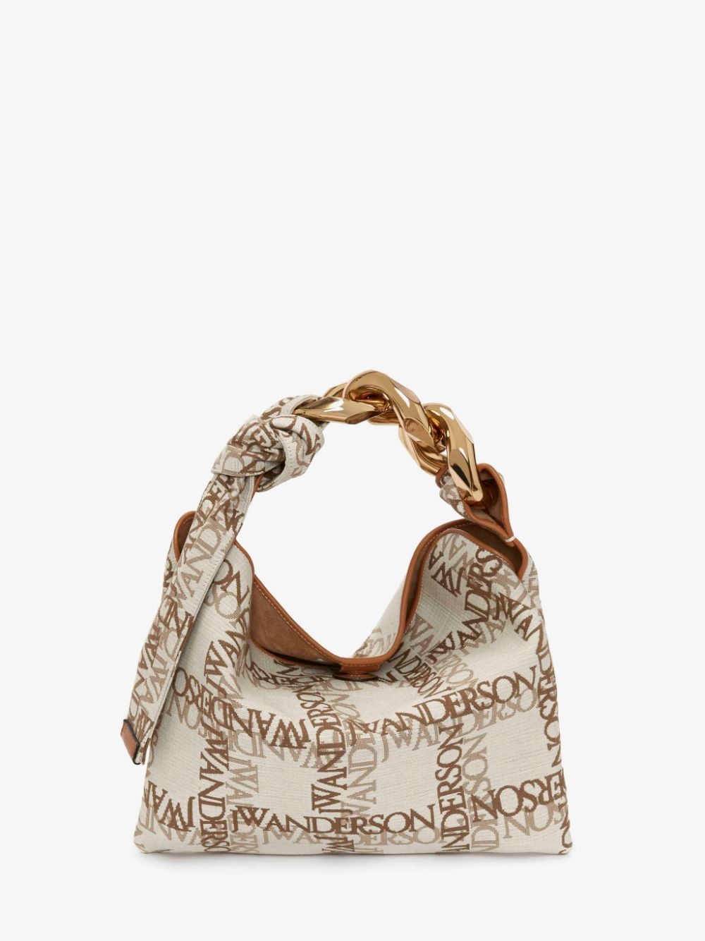 - Jacquard hobo shoulder bag - 3 large gold-tone chain links shoulder strap - Adjustable knot tie detail on one side of the chain - Magnetic closure - Suede lining - Can be worn as a shoulder or as a top handle bag