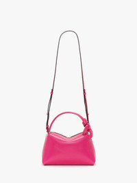 - Leather crossbody Corner bag with signature tonal pink chain link - Detachable leather crossbody strap - Decorative chunky contrast yellow stitching - Embossed logo on outer panel - Zip closure with branded puller - Inner leather pocket - Tonal pink tone hardware - Can be worn crossbody or in hand Additional Information - Colour: Hot Pink - Dimensions: H: 14.5cm / W: 23cm / D: 9cm - Outer: 100% Full Grain Calf Leather - Lining: 100% Polyester - Hardware: 50% ABS, 50% Zamak - Made in Spain - SKU: HB0642LA0020350