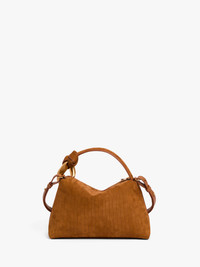 - Suede crossbody Corner bag with signature brushed gold chain link - Detachable leather crossbody strap - Blind logo embossing on front panel - Top zip opening with branded puller - Inner leather pocket with blind logo embossing - Brushed gold hardware - Nylon lining - Can be worn crossbody or in hand Details - Colour: Caramel - Dimensions H: 14.5cm / W: 23cm / D: 9cm - Strap Drop: Long: 51cm / Short: 7cm - Outer: 80% Split grain calf leather, 20% Full grain calf leather - Lining: 100% Cotton - Made in Spain - SKU: HB0758LA0375604