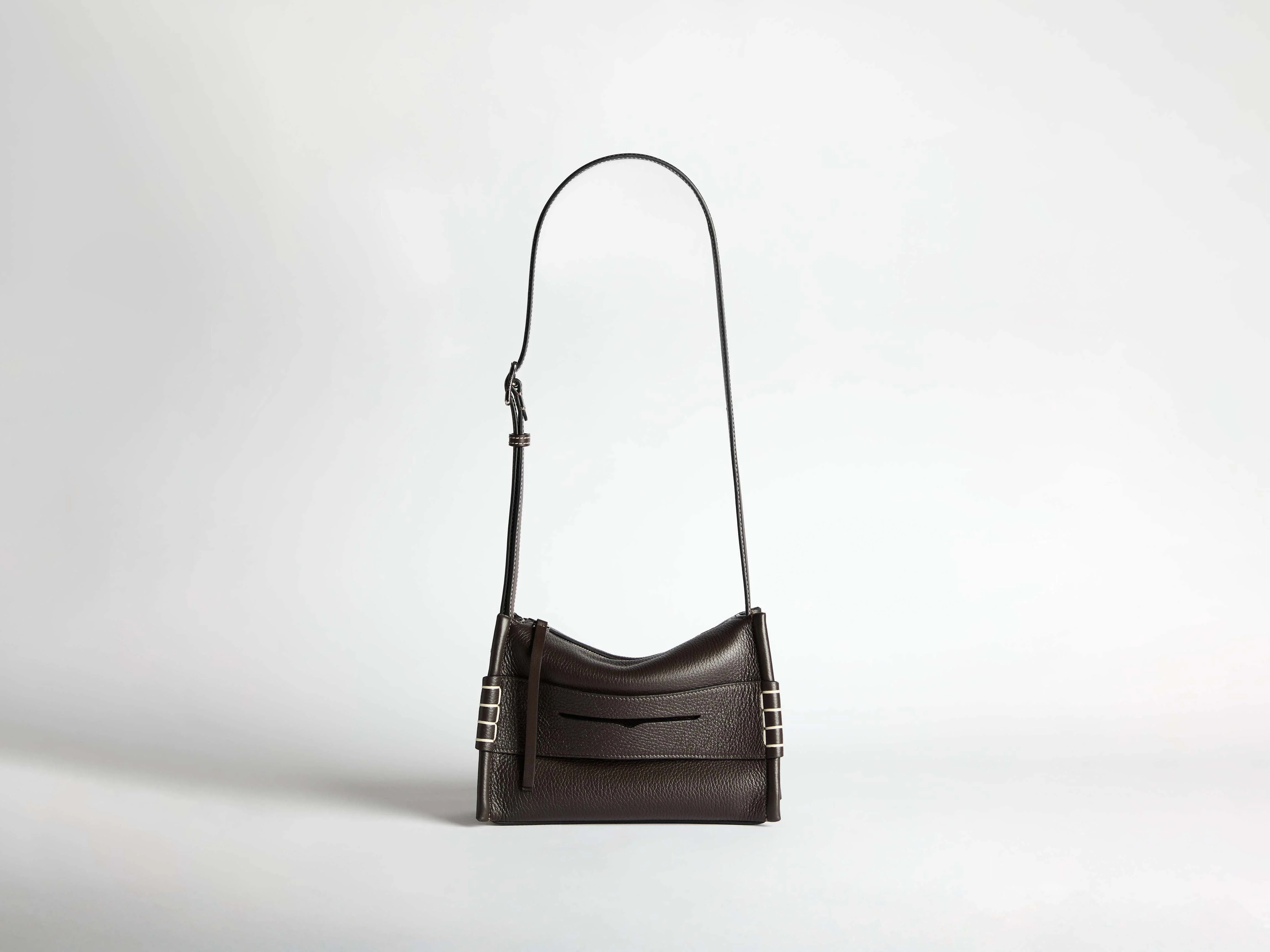 Crafted in Italy.The small Messenger Loafer Bag in chocolate brown deer calf. Made for movement, in a compact size, with an adjustable cross body strap and wider opening for easy of functionality. Finished with silver finish hardware. Every detail is carefully considered. The penny keeper, sewn by hand with box stitches, wrapping over four times, reminiscent of the shoe itself. The base mimics the sole of a loafer, stitching details reflect the welt of a shoe. Precisely cut, edge-painted and logo embossed leather is meticulously assembled, for a seamless fit. Functional, fluid, made to move. Details - Colour: Chocolate Brown - Composition [Main]: 100% Full Grain Deer Leather - Composition [Lining]: 100% Split Grain Calf Leather - Composition [Hardware]: 100% Zamak - Measurements: [H] 17.5cm | [L] 25cm | [W] 11cm - Made in: Italy - SKU: HB0767LA0377660
