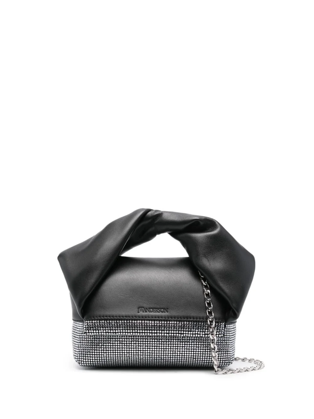 small Twister tote bag Highlights - Black, silver-tone - Lambskin - Nappa leather - Rhinestone embellishment - Single rolled top handle - Twist detailing - Detachable chain-link shoulder strap - Debossed logo to the front - Main compartment - Internal patch pocket - Internal logo stamp - Leather lining - Silver-tone hardware - Foldover top with magnetic fastening - This piece comes complete with a protective dust bag. Imported Composition Outer: Lamb Skin 100% SIZE & FIT Model measurements Height 5 ft 10 in(1.78 m) Bust/Chest 33.07 in(84 cm) Hips 36.61 in(93 cm) Waist 24.8 in(63 cm) Measurement DEPTH 2.36 in(6 cm) HANDLE 2.36 in(6 cm) HEIGHT 4.33 in(11 cm) STRAP 22.04 in(56 cm) WIDTH 6.49 in(16.5 cm)