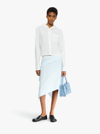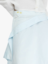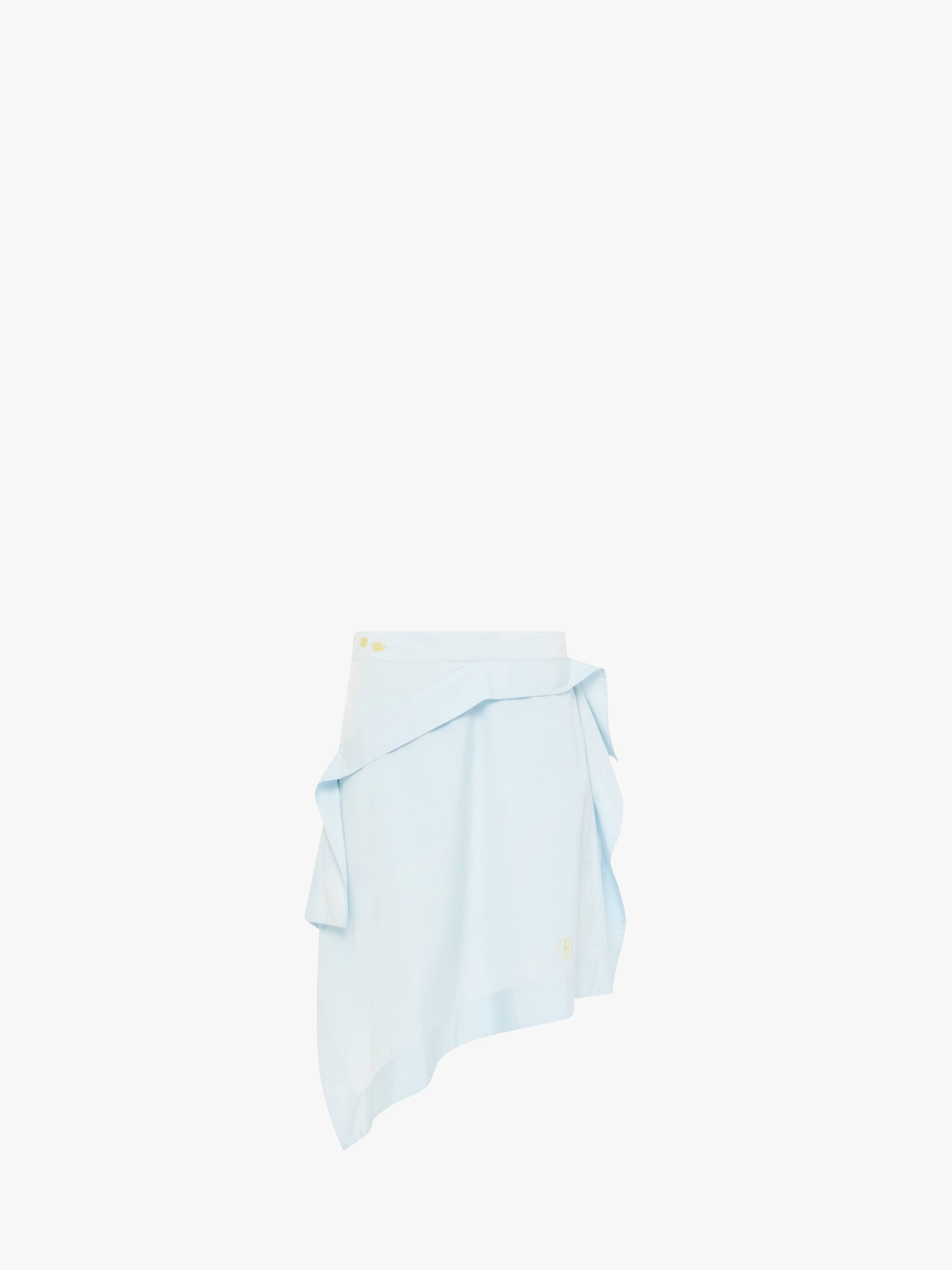 - Square drape skirt complete in an asymmetric silhouette - Layered drape hem - Yellow crockery embroidery on back panel - Tonal buttons - Unlined Details - Colour: Pale Blue - Composition: 100% Cotton - Mid weight - Made in: Bulgaria - SKU: SK0193PG1823806