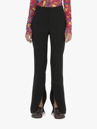 - Slightly flared fit trousers - Clean waistband - Non functional front welt pockets - Side slit pockets - Centre front and back crease - Internal branded waistband - Fits true to size, take your normal size.