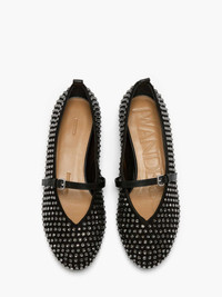 - Ballet pumps with crystals - Upper with strap - Rounded toe - Leather sole - Fits true to size, take your normal size Additional Information - Colour: Lavender - Outer: 100% Split grain lamb suede - Lining: 100% Split grain sheep leather - Sole: 100% Split grain calf leather - Hardware: 100% Zamak - Made in Italy