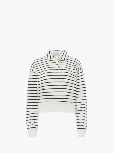 - Cropped fit integral striped jersey polo top - Dropped shoulders - Tonal buttons - Contrast crockery embroidery on front side - Contrast logo embroidery at centre back - Ribbed hem and cuffs - Unlined Details - Colour: Off White/Brown - Composition: 100% Cotton - Natural stretch - Made in: Portugal - SKU: JW0243PG1857036
