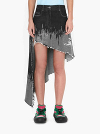 - Boxy fit skirt - Degrade' hot fix stud placement on hem - Back patch pockets - Logo embossed black leather patch - Fits true to size, take your normal size.