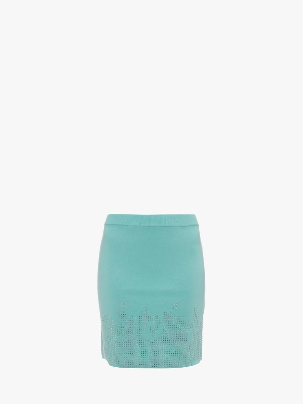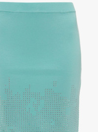 - Fitted silhouette mini skirt - Heat applied strass detail on hem - Logo embossed plaque on upper back - Fits true to size, take your normal size.