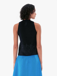 - Fitted silhouette vest - Crew neckline - Fitted silhouette - Heat applied strass detail on hem - Logo embossed plaque on upper back - Fits true to size, take your normal size.