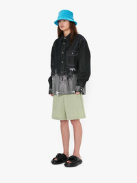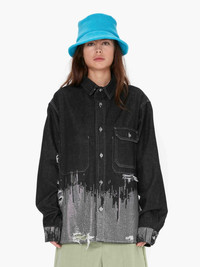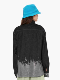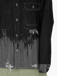 - Boxy fit shirt - Degrade' hot fix stud placement on hem - Dropped shoulder - Chest patch pocket - Oversized style, designed to be worn loose. Take your usual size.