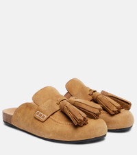 Crafted in Italy from suede, these mules from JW Anderson feature a tassel-trimmed style. The piece is finished with leather insoles and rubber soles on round-toe silhouettes. Product Details - Upper: calf leather (suede) - Lining: leather - Sole: leather insole, rubber sole - Toe shape: round toe - Made in Italy - Includes: dust bag, shoe box - Designer color name: Rust - Item color: brown - Item number: P01086806 Size & Fit - True to size - European sizes - 2cm-1" platform (size EU 38)