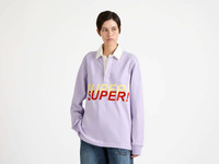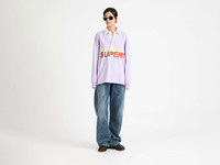 'Super Super' rugby polo top in washed purple jersey. Features a graphic satin stitch embroidery, a cotton twill collar and concealed placket. Finished with rib cuffs, side split at the hem and corozo buttons Details - Colour: Purple - Composition [Main]: 100% Cotton - Made in: Portugal - Model [Wears]: Size M, 180cm Tall - SKU: JO0293PG1938700