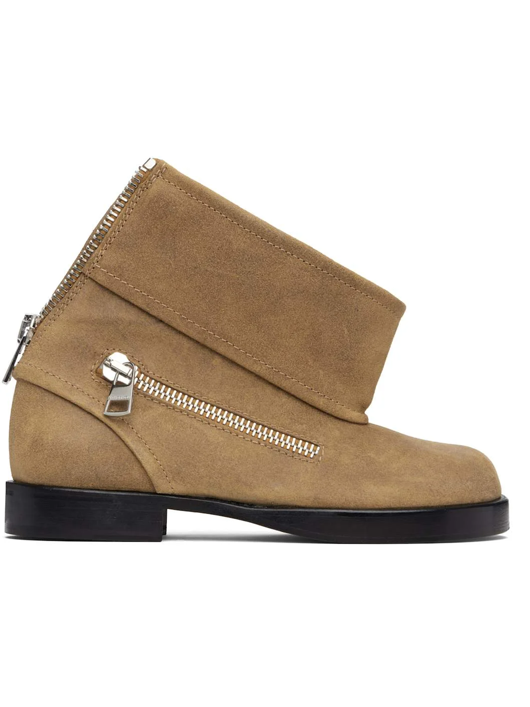 Ankle-high blistered suede boots. · Zip detailing at outer side · Zip closure at heel · Stacked leather midsole and block heel · Leather sole with rubber injections Supplier color: Rust Upper: leather. Sole: leather, rubber. Made in Italy 252477F113000