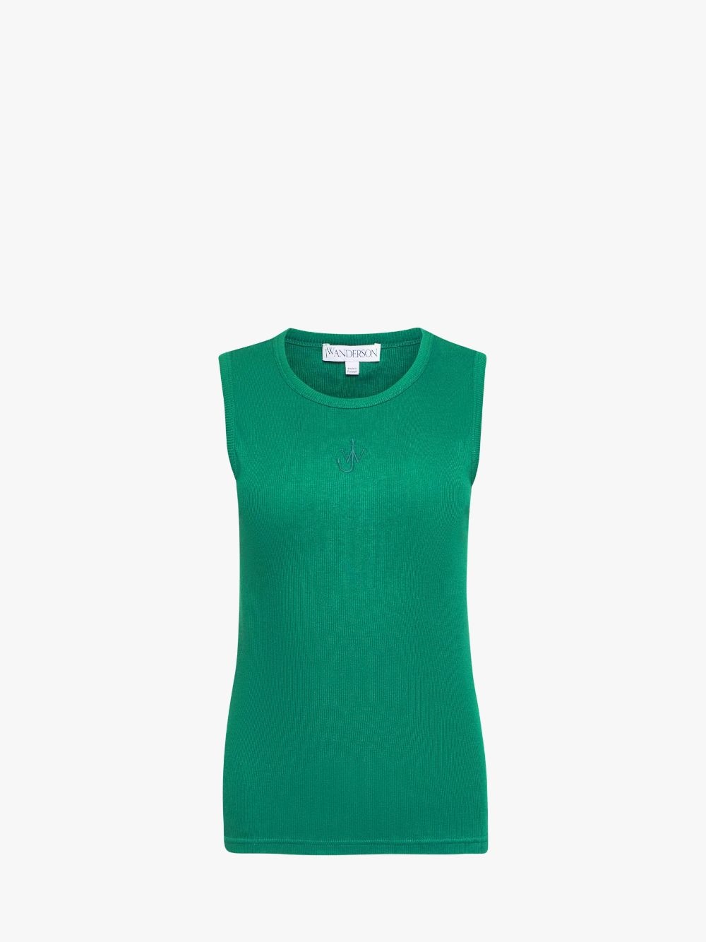 - Fitted silhouette tank top - Scoop neckline - Racerback - Contrast anchor embroidery on upper centre front - Fits true to size, take your normal size. Additional Information - Colour: Emerald - Composition: 100% Cotton - Light-weight ribbed jersey fabrication - Made in: Portugal - SKU: JO0248PG1717540