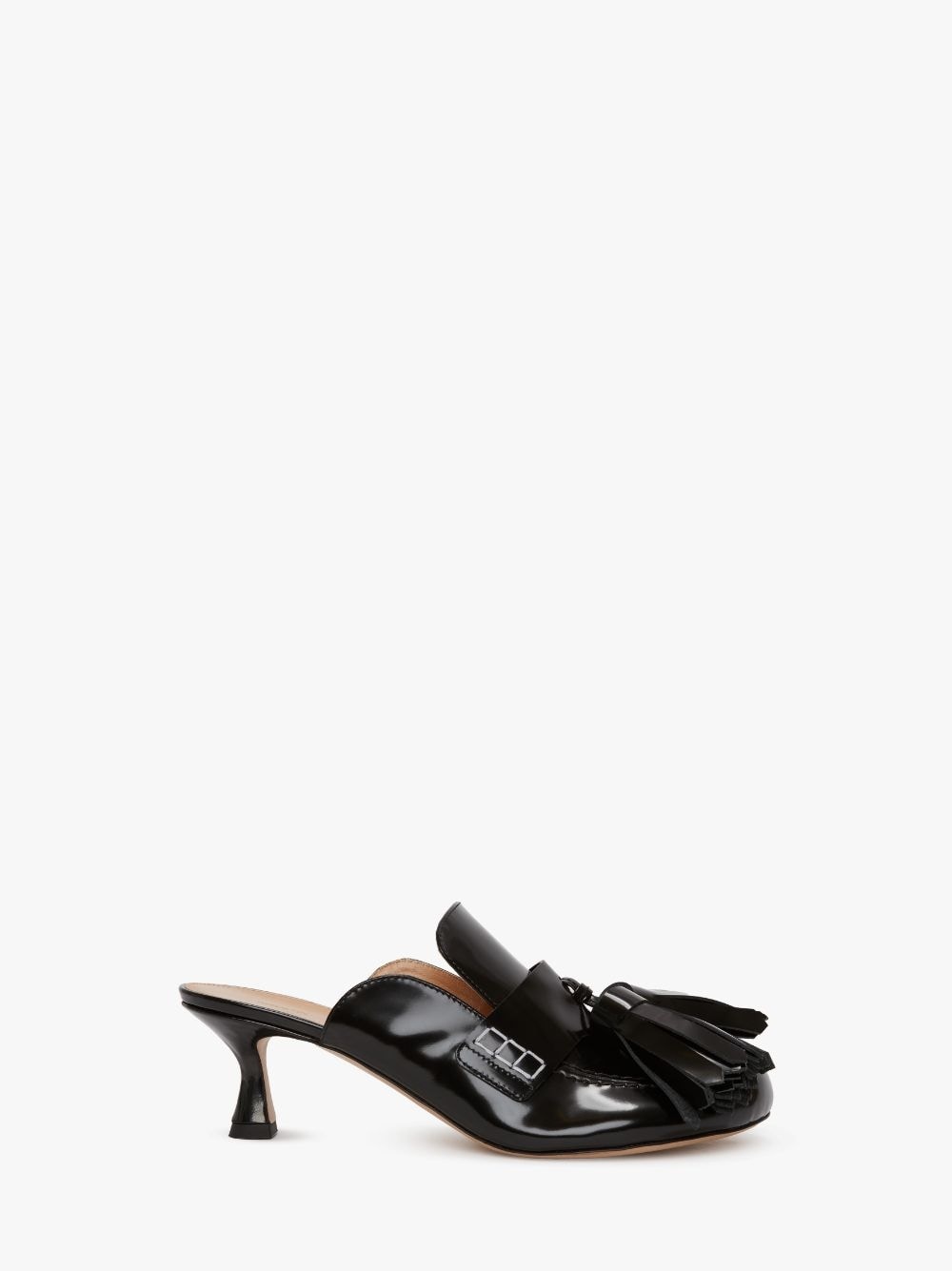 - Leather mules with exaggerated tassels - Contrasting white stitch on leather detailing - Heel: 5.5cm - Fits true to size, take your normal size Additional Information - Colour: Black - Outer: 100% Full grain calf leather - Lining: 100% Split grain sheep leather - Sole: 100% Split grain calf leather - Made in Italy