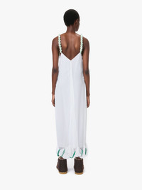 - Long-line maxi dress in crinkle creppon fabrication - Twisted front and draped design - Contrasting tassel detailing - Front and rear V-neckline - Fitted silhouette, take your usual size Additional Information - Colour: Off White - Composition - Main: 100% Viscose - Lightweight creppon fabrication - Made in China - SKU: DR0454PG1647002