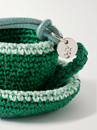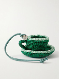 Tea time gets a stylish upgrade with JW Anderson’s tiny crocheted charm—a playful pick-me-up for your bag. It's suspended from a smooth leather strap and features a logo-engraved silver-tone charm. Details & Care - Tonal-green and white crochet, gray-green leather (Calf) - Comes with dust bag