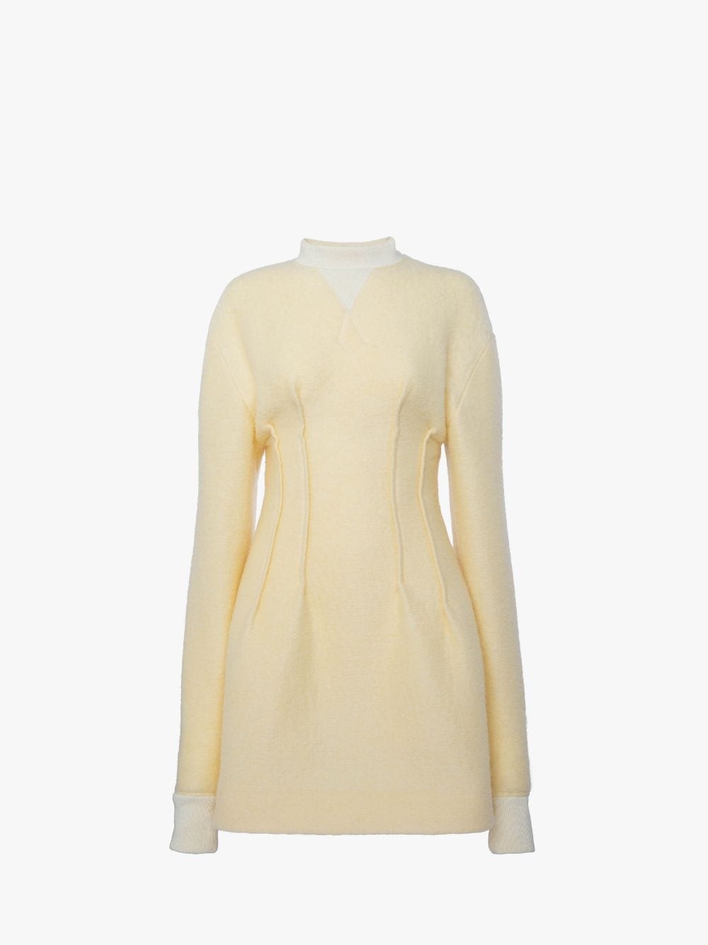 - Brushed effect mohair fabrication - Crew-neckline - Fitted, darted waistline - Tonal embroidered anchor branding on centre back - Tonal embroidered anchor branding Additional Information - Colour: Pale Yellow - Composition - Main: 31% Polyester, 29% Mohair, 26% Polycarbonate, 14% Virgin Wool - Heavy-weight fabrication - Made in Bulgaria - SKU: DR0461PG1643208