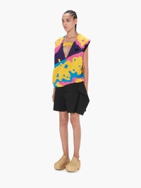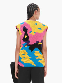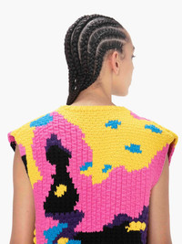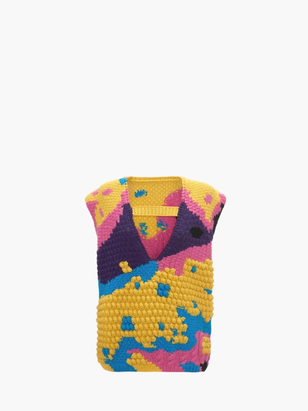 - Boxy fit vest - V neck with ribbed collar tab - Ribbed hem - Logo embossed black leather patch on upper back - Hand knit - Regular fit. Take your usual size.