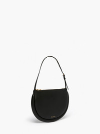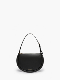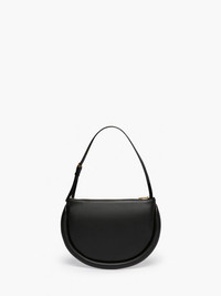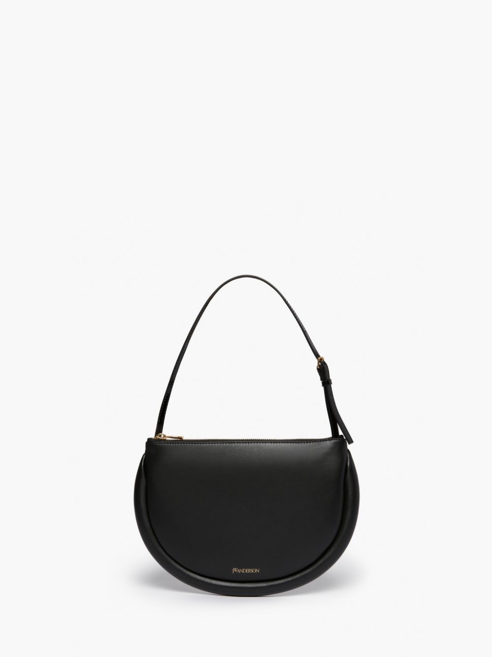 • Thin adjustable leather shoulder strap • Oversized padded tubular detail • Gold logo embossing on outer panel • Zip closure with branded zip puller • Inner slip pocket • Nappa lining • Gold hardware • Can be worn on the shoulder