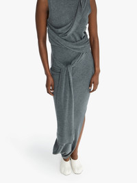 - Jersey stitch tie detail wrap dress - Fitted silhouette - Draped wrap around tie detailing - Unlined Details - Colour: Charcoal Melange - Composition: 60% Lyocell, 40% Merino Wool - Centre back length: 138cm - Made in: China - SKU: KW1445YN0320972