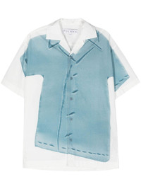 trompe l'oeil-print cotton shirt Highlights - White/light blue - Cotton - Poplin texture - Trompe l'oeil print - Embroidered logo to the rear - Camp collar - Front button fastening - Drop shoulder - Short sleeves - Straight hem - Short side slits - When buying this unisex item, keep in mind that it is graded in standard men's sizing. Imported Composition Cotton 100%