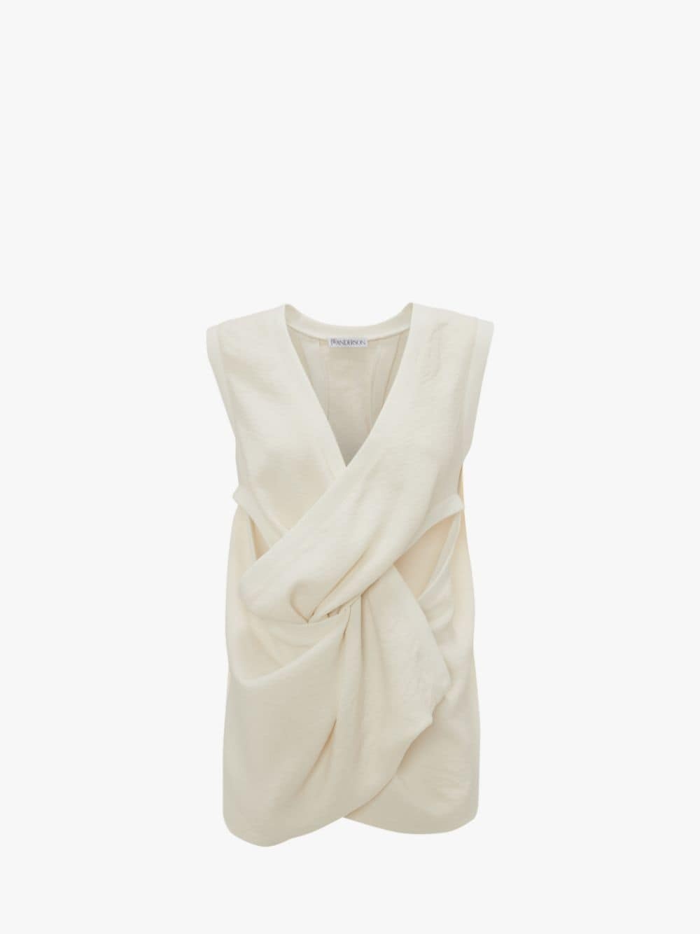 - Relaxed fit sleeveless top - Deep V neckline - Twisted front - Open waist - Oversized style, designed to be worn loose. Take your usual size.