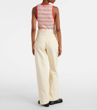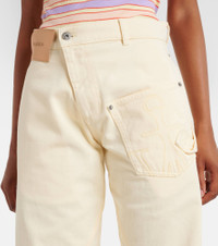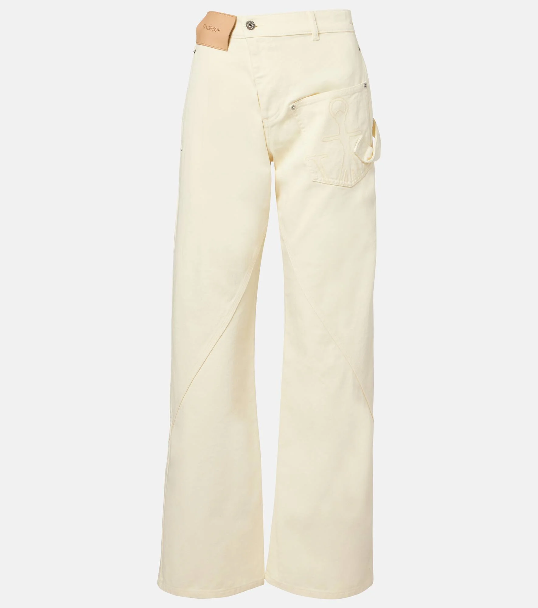These wide-leg jeans showcase JW Anderson's Anchor emblem, a symbol that presents the designer's initials in a manner that's at once humorous and humble. This pair features a low-rise waistline with a twisted design. Product Details - Material: 100% cotton - Care instructions: machine wash at 30 degrees - Made in Portugal - Designer color name: Lemon - Item color: yellow - Lining: 100% cotton - Contains non-textile parts of animal origin - Closure: zipper fly, button fastening - Pockets: patch pockets, side slit pockets - Belt loops - Item number: P01058758 Size & Fit - Fits small to size - we recommend trying one size larger - Non-stretchy fabric - Wide-leg - High-rise - The model seen in the picture is 178cm-5'10" and wearing a size 27