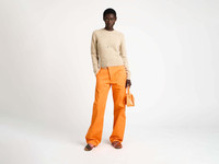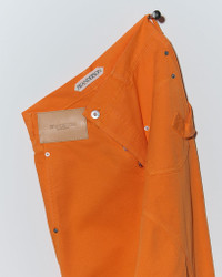 Crafted in Hiroshima, Japan, developed in collaboration with expert Japanese denim makers. Twisted workwear denim jeans in bright orange. Features a large leather logo patch and anchor stitched pocket. Finished with engraved metal shank buttons, logo rivets and orange binding. Details - Colour: Bright Orange - Composition [Main]: 100% Cotton - Composition [Lining]: 100% Cotton - Made in: Japan - Model [Wears]: Size 26, 180cm Tall - SKU: DT0127PG1933433