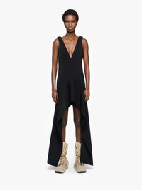 - V-neckline mini dress complete with curve draped hemline - Side zip closure - Fully lined - Fitted silhouette, take your usual size Additional Information - Colour: Black - Composition: 52% Polyester, 43% Wool, 5% Elastane - Light-weight textured fabrication - Made in: Bulgaria - SKU: DR0478PG1580999