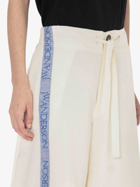 - Wide leg shorts - Tonal tape on waist - JW Anderson integrated stripe design - Slanted side pockets - Back welt pocket - Horn buttons - Fits true to size, take your normal size.