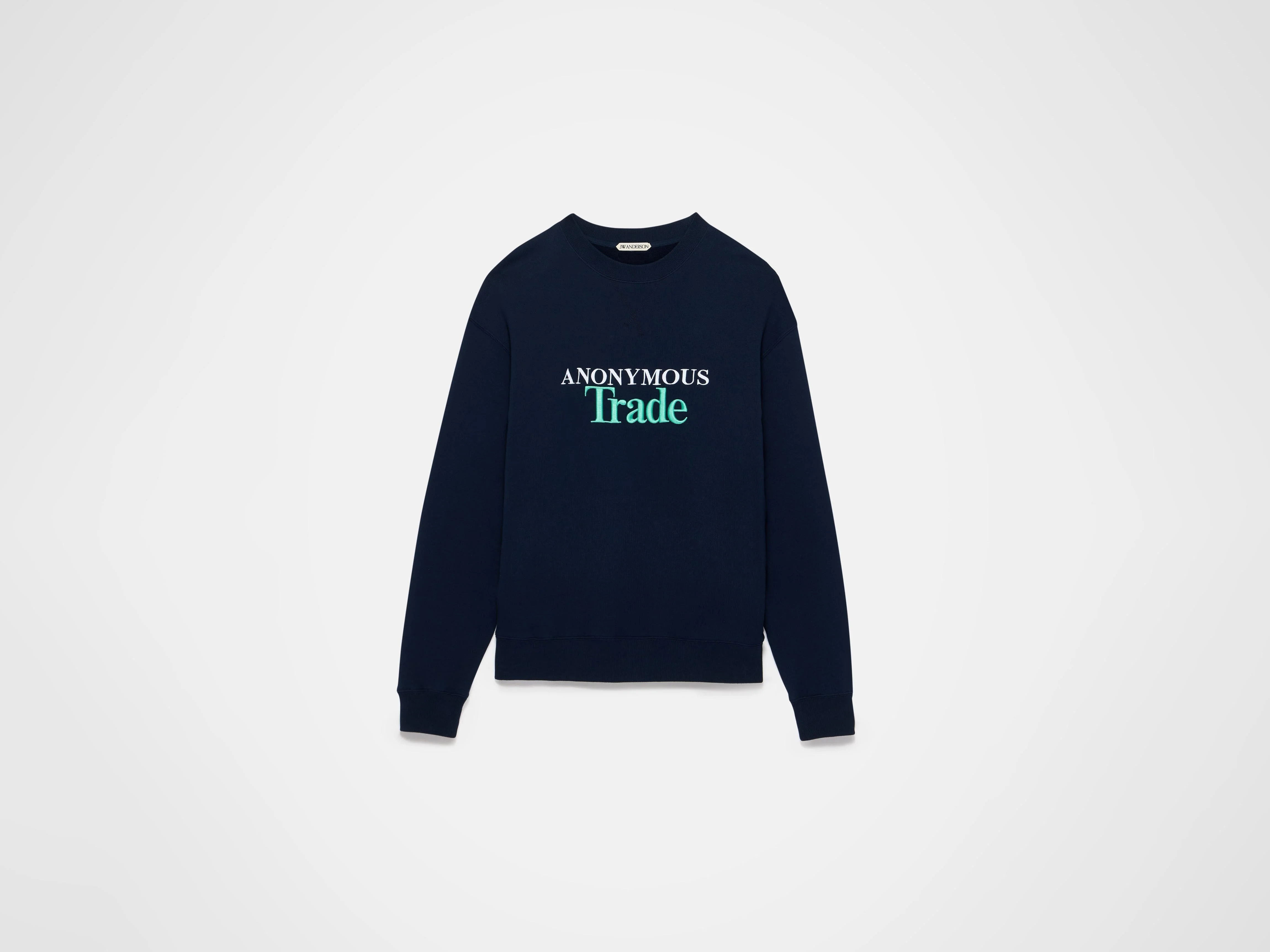 COMING SOON // Created in collaboration with artist Dean Sameshima, known for his exploration of queer storytelling, subversion, where the lines of the political and personal converge. Anonymous Trade sweatshirt in washed navy jersey, featuring raised embroidery in collaboration with artist Dean Sameshima, finished with a rib neck, cuff and hem. Details - Colour: Navy - Composition [Main]: 100% Cotton - Made in: Portugal - Model [Wears]: Size M, 180cm Tall - SKU: JW0275PG1905888