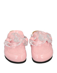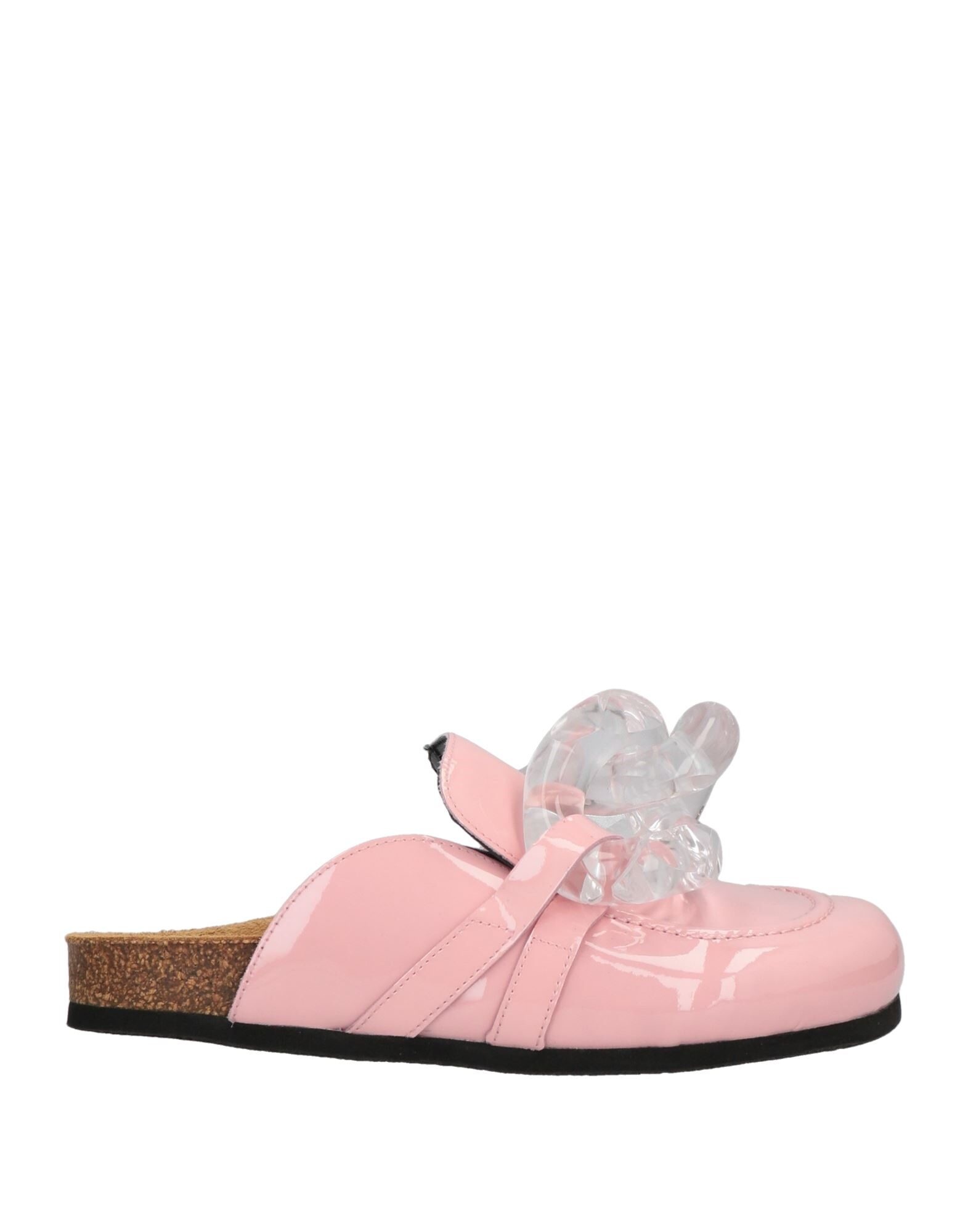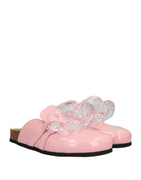^Clear chain link detail embellishments ^Slip on loafer mules ^Rounded toe ^Cork footbeds