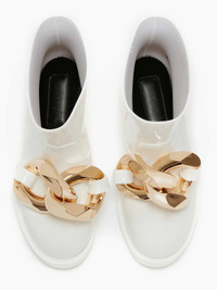 ^Gold chain link detail embellishments ^Ankle boot ^Rounded toe
