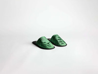 Close Toe Slide in Emerald Green. Crafted in Italy, this slide features an upper made from silk jacquard upholstery fabric, woven by British specialists in historic damask silk. Designed for comfort as well as refinement, it is finished with a foam insole, a nubuck leather outsole suitable for indoor and outdoor wear, and the JWA logo woven label on the insole. Details - Colour: Emerald - Composition [Outer]: 100% Silk - Composition [Lining]: 100% Silk - Composition [Outsole]: 100% Split Grain Calf Leather - Made in: Italy - SKU: FL0001PG1888540