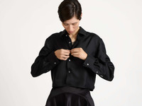 Cropped shirt in black fluid silk twill shirt. Features a cropped silhouette with full sleeves, with anchor embroidery detail in tonal thread. Finished with mop buttons. Details - Colour: Black - Composition [Main]: 100% Silk - Made in: Italy - Model [Wears]: Size 8, 180cm Tall - SKU: SH0368PG1934999