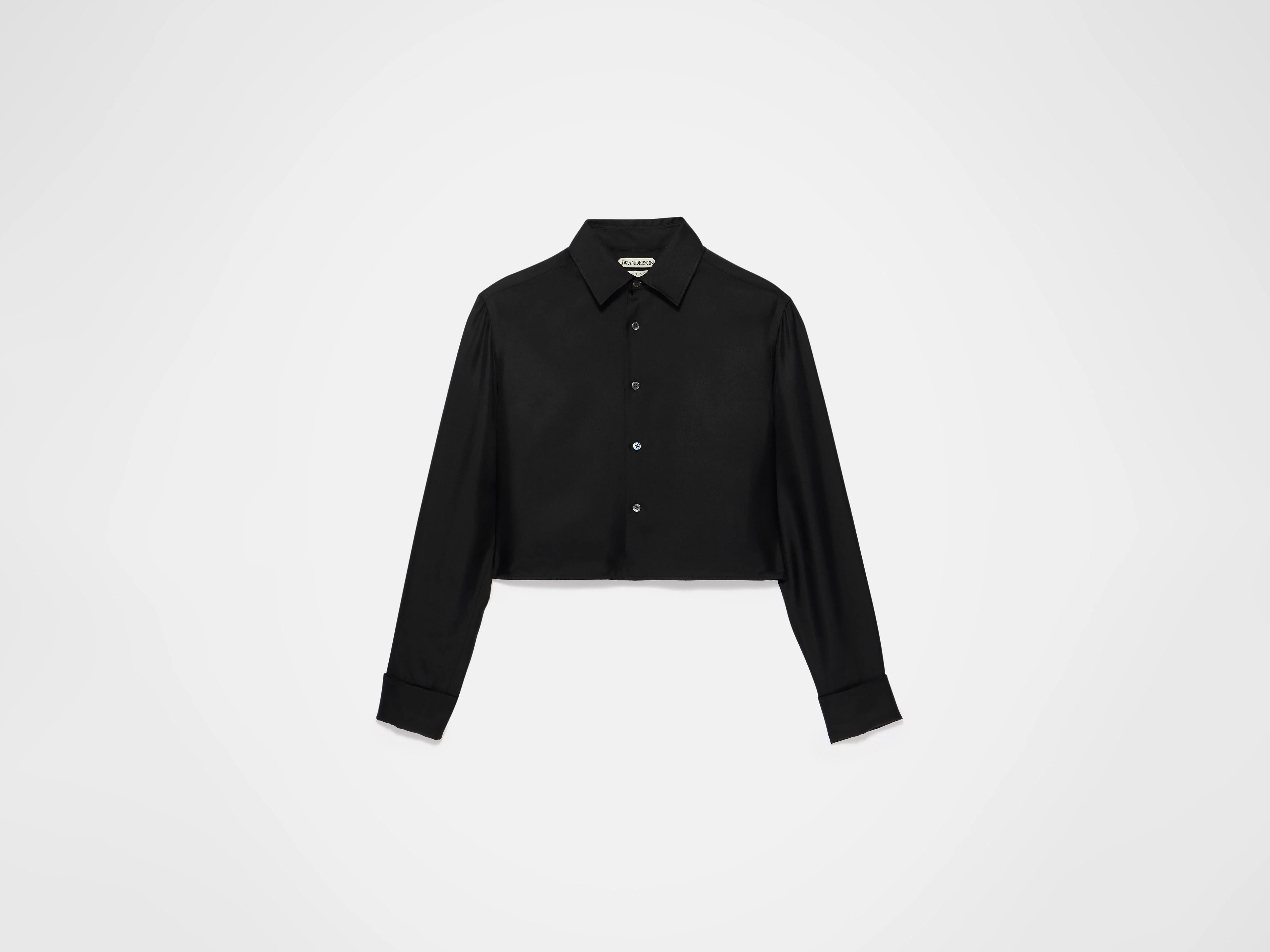WOMENS CROPPED SILK TWILL SHIRT IN BLACK