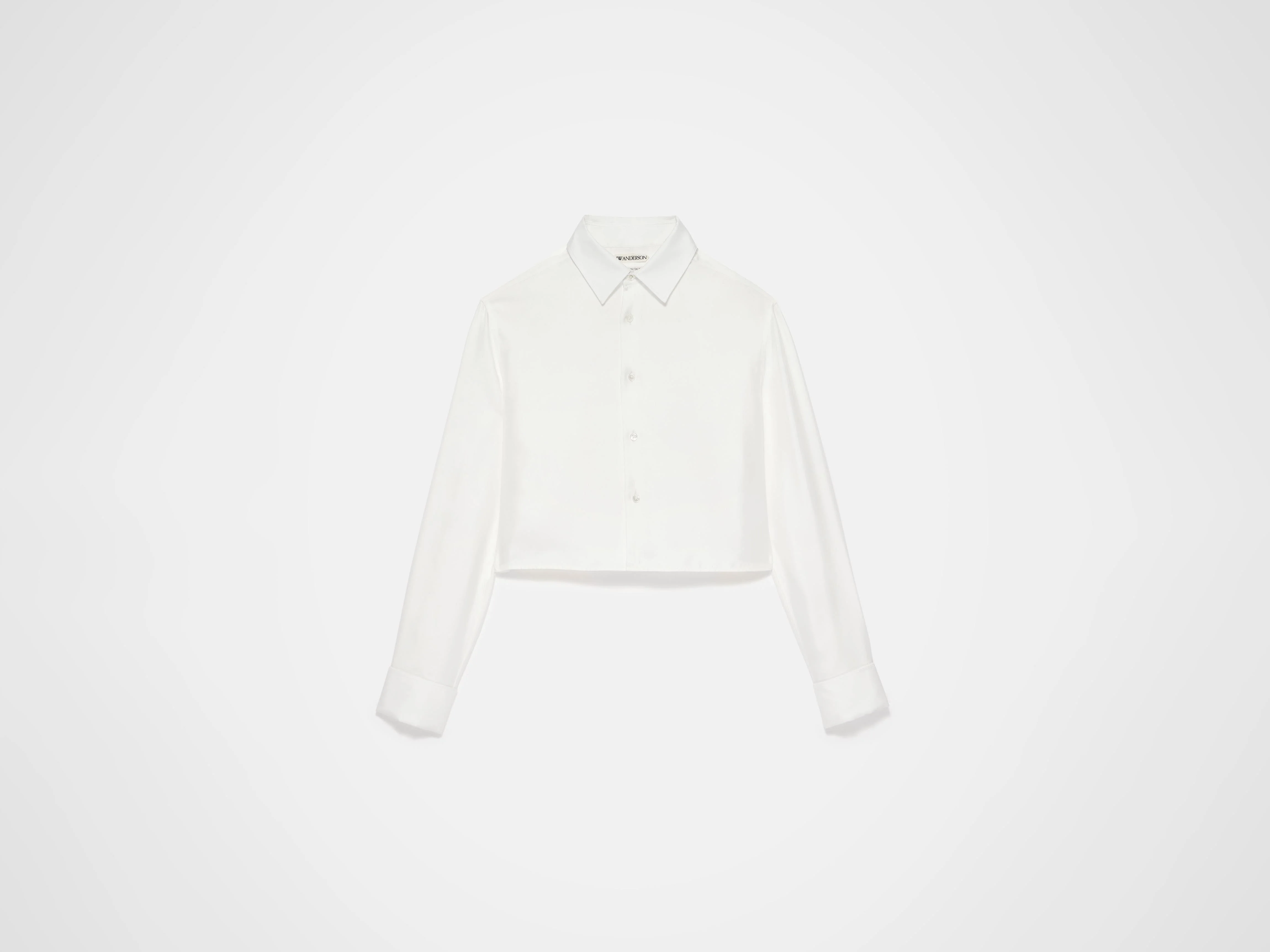 WOMENS CROPPED SILK TWILL SHIRT IN OFF-WHITE