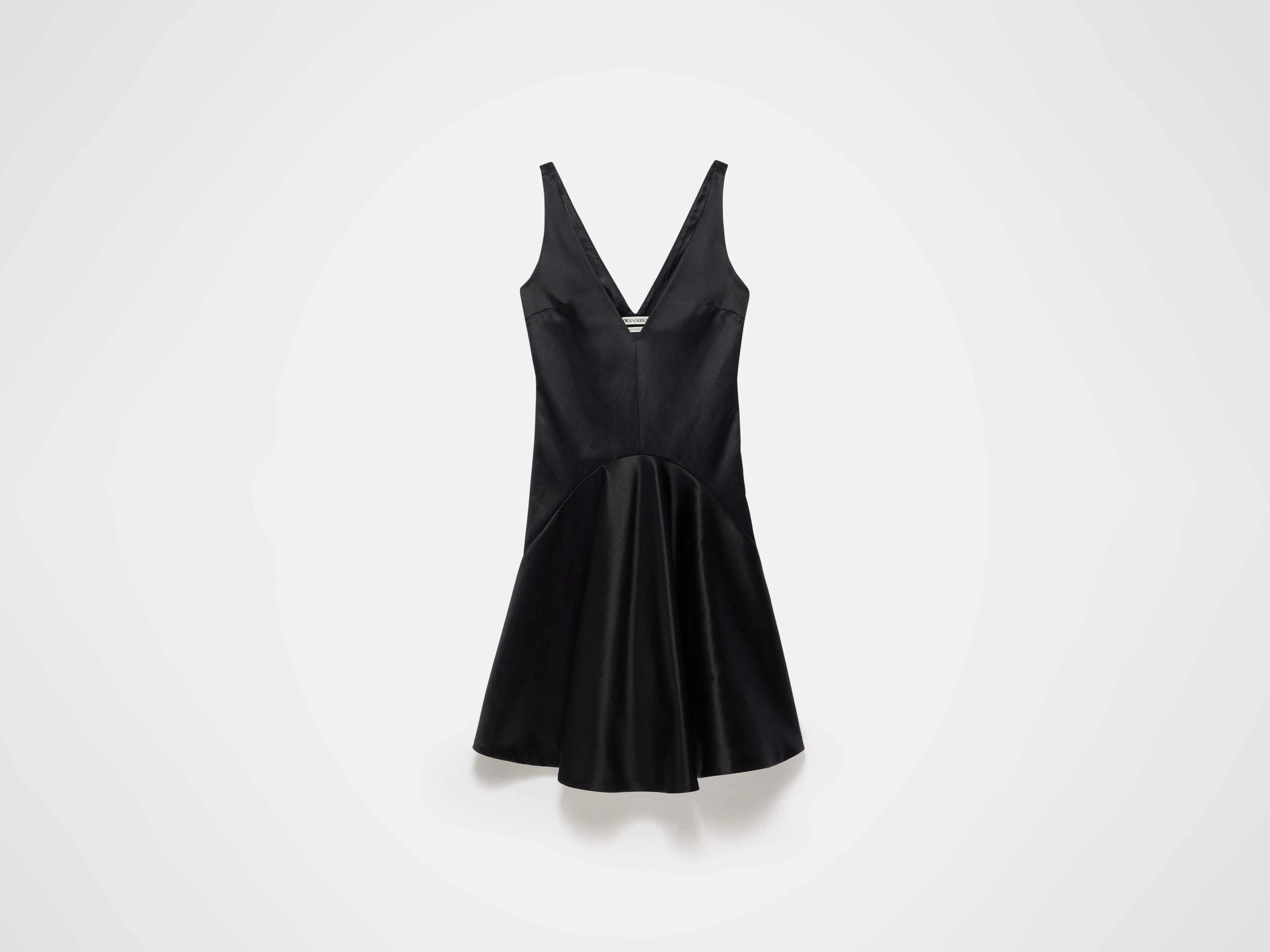 Draped skirt dress in a black double satin. A dramatic silhouette featuring a v-cut neckline and curve draped skirt, with a tipped hem at the front. Finished with an anchor logo zip. Details - Colour: Black - Composition [Main]: 64% Cotton, 36% Silk - Composition [Lining]: 65% Acetate, 35% Viscose - Made in: Portugal - Model [Wears]: Size 6, 175cm Tall - SKU: DR0526PG1941999